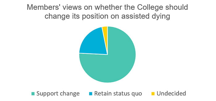 The independent assisted dying survey was carried out across four weeks in February and March 2023 and resulted in 19% of members at all career levels sharing their views.