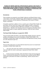 Guidance for Health Authorities and Dental Schools Applying to FDS Author: Faculty of Dental Surgery Year: 1999 Publisher: FDS Guidance for Health Authorities and Dental Schools Applying to FDS (PDF 47Kb)