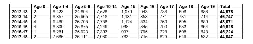 • Number has risen for the second consecutive year for 5 to 9 age group.